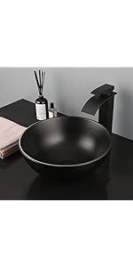 KECTIAKL Bathroom Vessel Sink 13 Inch Black Ceramic Sink with Mixer Tap,Above...