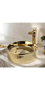 KECTIAKL Bathroom Vessel Sink 15 Inch Gold Ceramic Vessel Sink with Waterfall...