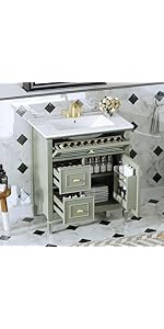Our Bathroom vanity focuses on combining minimalism and vintage style elements. Its designers combine simple lines with high-quality materials to create stunning resultss. The overall shape of the cabinet is simple yet refined, with smooth and dynamic lines. At the same time, high-quality solid wood is selected as the main material, which makes the cabinet more textured and gives people a noble and elegant feeling.